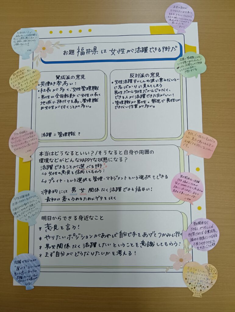 プログラムの締めくくりには、新たなお題をもとに、賛成・反対の意見を超えた「明日から実践できるアクション」を言語化しました。